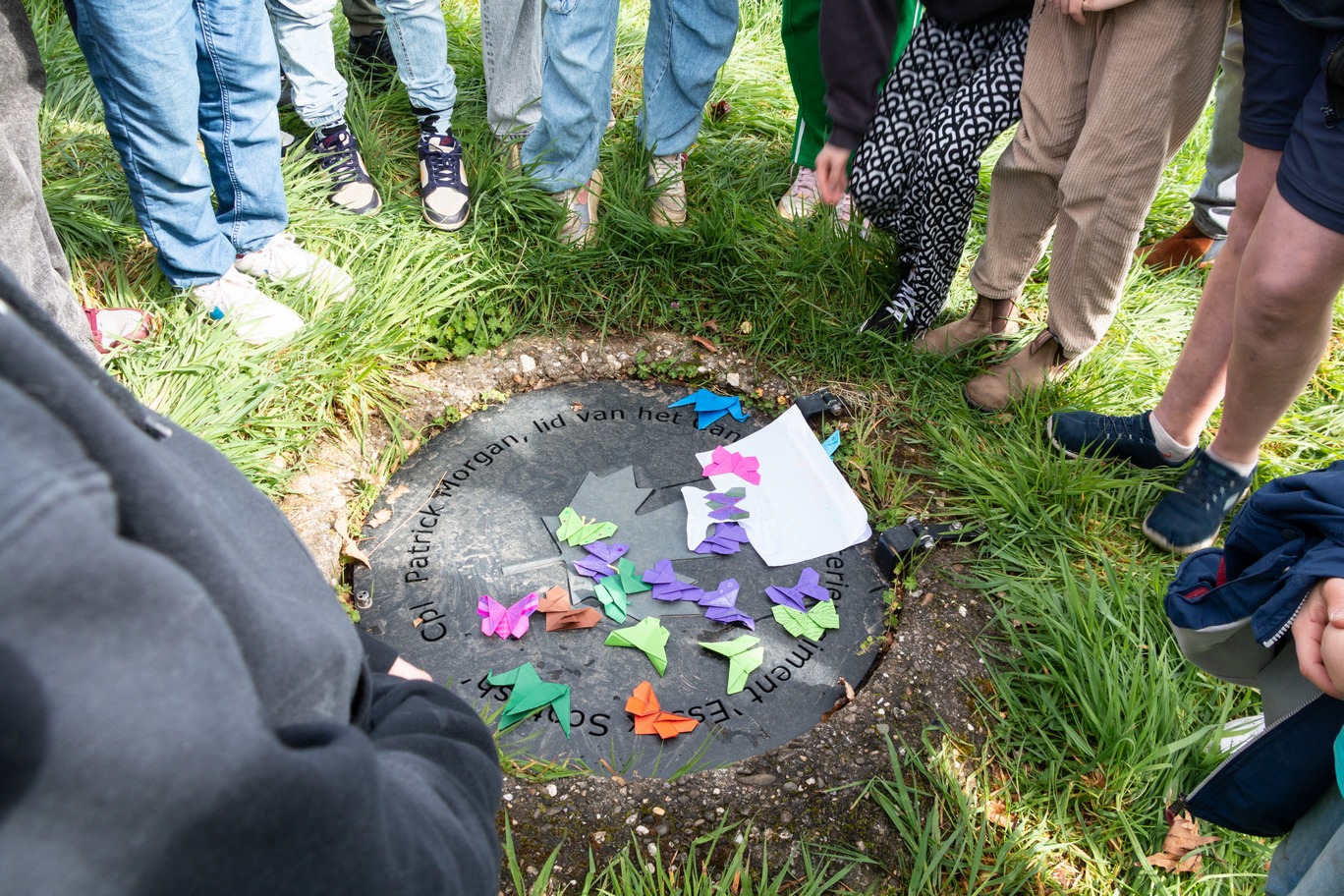 De leerlingen legden papieren vlinders op de put, terwijl namens de Stichting Herdenkingen Tweede Wereldoorlog Warnsveld Harm Kuijper bloemen op de put legde. Daarna werd één minuut stilte gehouden om Patrick Morgan te gedenken.