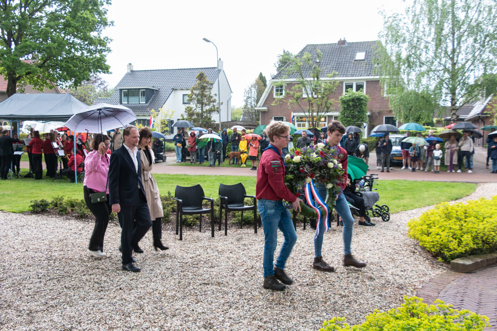 Leerling Rosalie van De Fontein las haar persoonlijke verhaal voor. Vervolgens werden kransen en bloemstukken gelegd namens de gemeente en diverse organisaties. Leerlingen van De Fontein en scouts legden ieder een witte roos. Tenslotte kreeg iedereen de gelegenheid om even bij het monument stil te staan, waarbij menigeen nog een bloem of boeket legde. Dit alles werd begeleid door muziek van Excelsior.