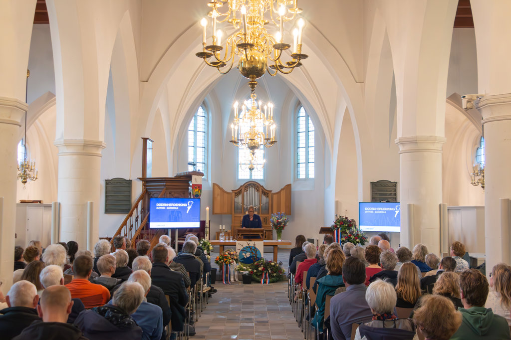 WARNSVELD - De jaarlijkse herdenking ving aan in de Martinuskerk, waar Jappie Berger alle aanwezigen verwelkomde. Het Warnsvelds Mannenkoor voorzag de bijeenkomst van passende muziek, terwijl leerlingen van adoptieschool De Fontein gedichten voordroegen.