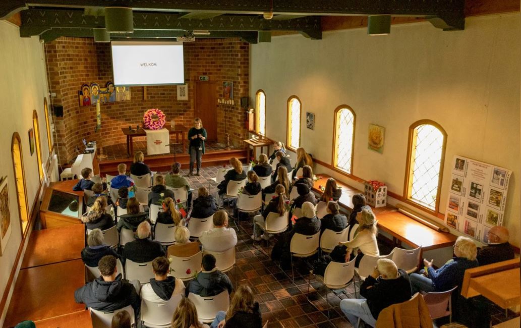 WARNSVELD - Vrijdag 18 april kwamen leerlingen van het Isendoorn College en belangstellenden naar het terrein van het Groot Graffel, het huidige GG-Net in Warnsveld. Zij werden ontvangen in de Vredeskapel, waar zij werden toegesproken.