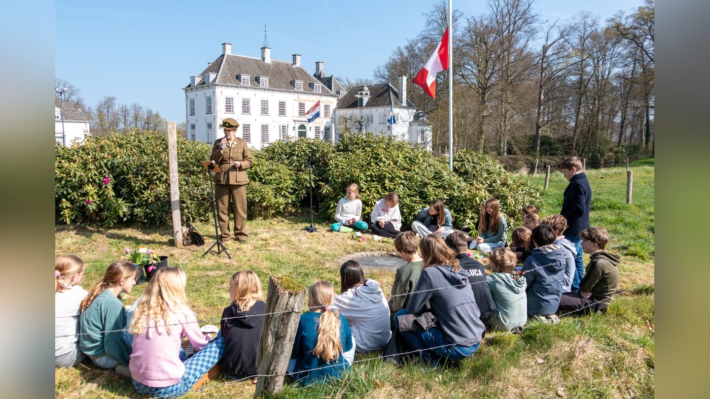 WARNSVELD - Op vrijdag 11 april kwamen leerlingen van groep 8 van de Vrije School De Zonnewende uit Zutphen naar Huis ’t Velde. Naast de oprijlaan werd op 5 april 1945 het lichaam van Corporal Patrick Morgan werd gevonden. Hij was een van de Canadese militairen die is omgekomen bij de bevrijding van Warnsveld en Zutphen in april 1945.