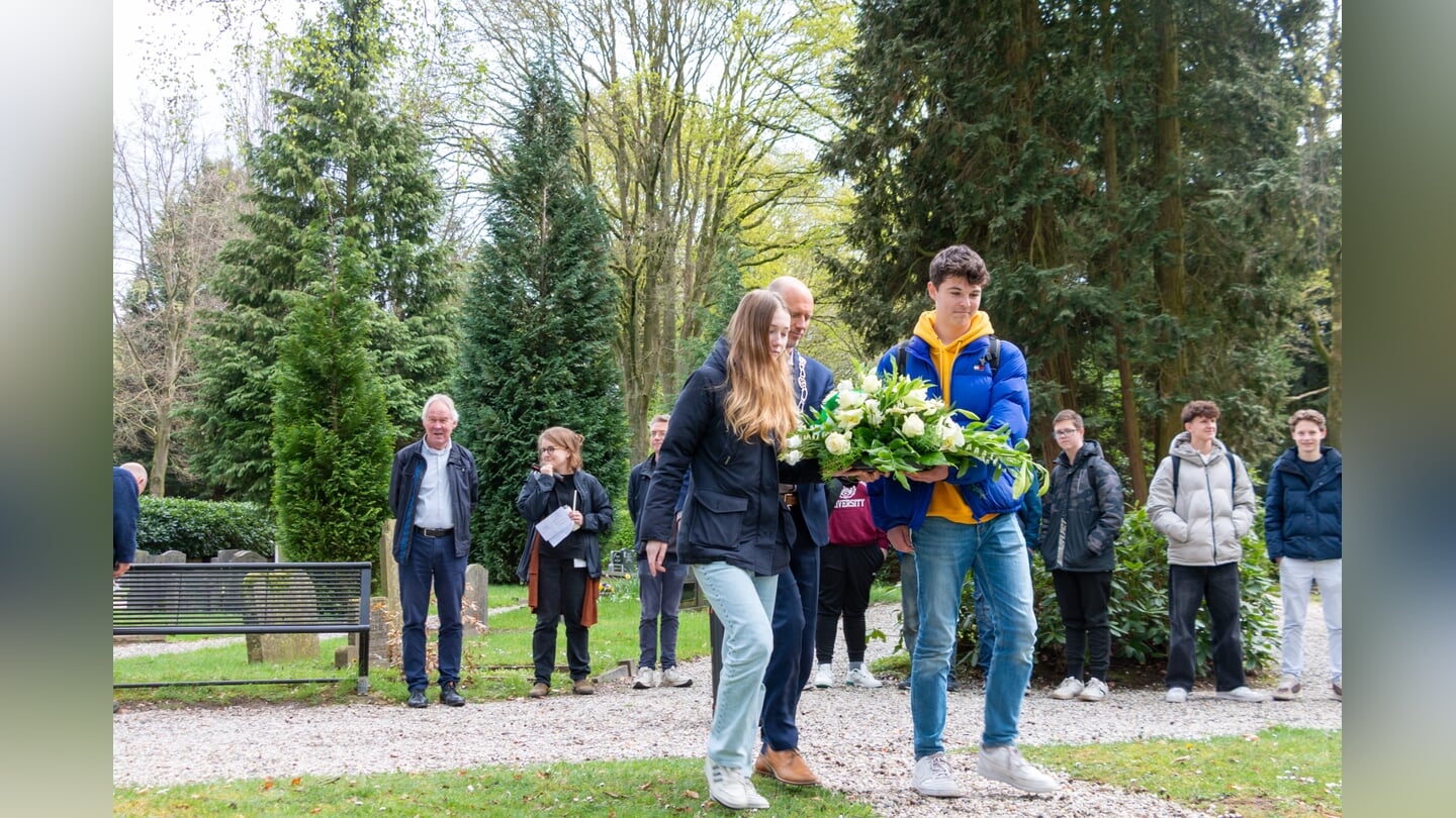 Vrijdag, 21 april. . Samen met de leerlingen van de klassen 3 Havo van de Adoptieschool Het Isendoorn College herdachten we de overleden psychiatrische patiënten die omkwamen door oorlogsgeweld en hen die naamloos werden begraven in vak D van het kerkhof in Warnsveld.
